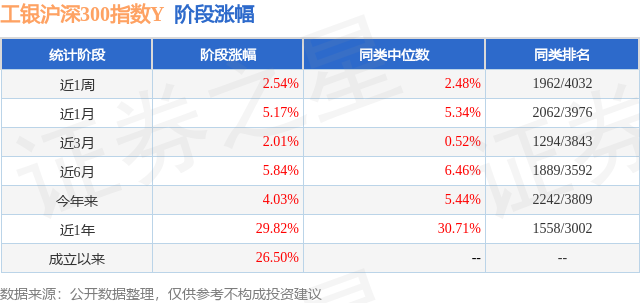 从业绩表现来看,工银沪深300指数Y基金过去一年净值涨幅为29.82%,在同类基金中排名1558/3002,同类基金过去一年净值涨幅中位数为30.71%。而基金过去一年的最大回撤为-7.24%,成立以来的最大回撤为-9.93%。