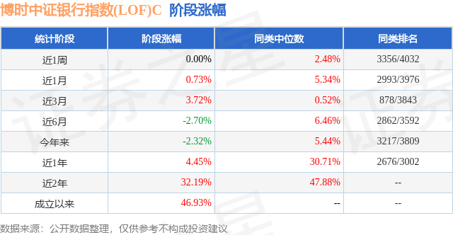 从业绩表现来看,博时中证银行指数(LOF)C基金过去一年净值涨幅为4.45%,在同类基金中排名2676/3002,同类基金过去一年净值涨幅中位数为30.71%。而基金过去一年的最大回撤为-14.48%,成立以来的最大回撤为-14.48%。