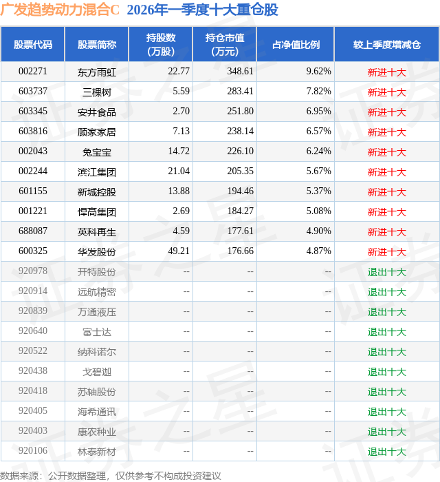 证券之星消息,日前广发趋势动力混合C基金公布一季报,2026年一季度最新规模0.05亿元,季度净值涨幅为-6.14%。
