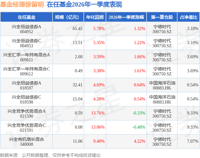 证券之星消息,日前兴全招益债券C基金公布一季报,2026年一季度最新规模15.04亿元,季度净值涨幅为0.54%。