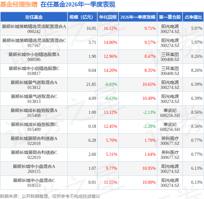 证券之星消息,日前景顺长城成长趋势股票A基金公布一季报,2026年一季度最新规模1.0亿元,季度净值涨幅为-2.13%。