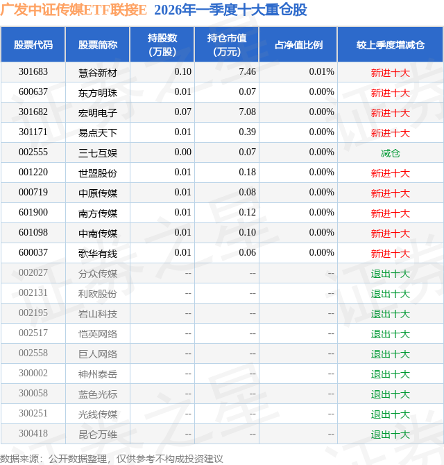 证券之星消息,日前广发中证传媒ETF联接E基金公布一季报,2026年一季度最新规模0.64亿元,季度净值涨幅为-2.8%。