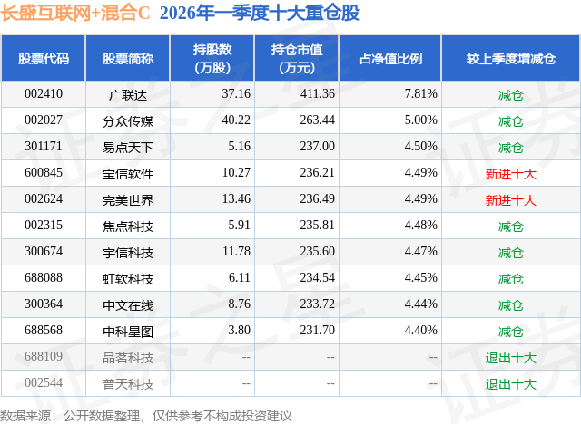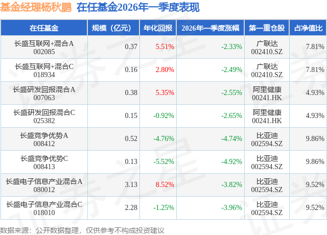 证券之星消息,日前长盛互联网+混合C基金公布一季报,2026年一季度最新规模0.16亿元,季度净值涨幅为-2.49%。