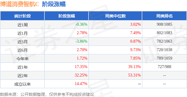 从业绩表现来看,博道消费智航C基金过去一年净值涨幅为17.35%,在同类基金中排名727/988,同类基金过去一年净值涨幅中位数为39.13%。而基金过去一年的最大回撤为-11.51%,成立以来的最大回撤为-27.23%。