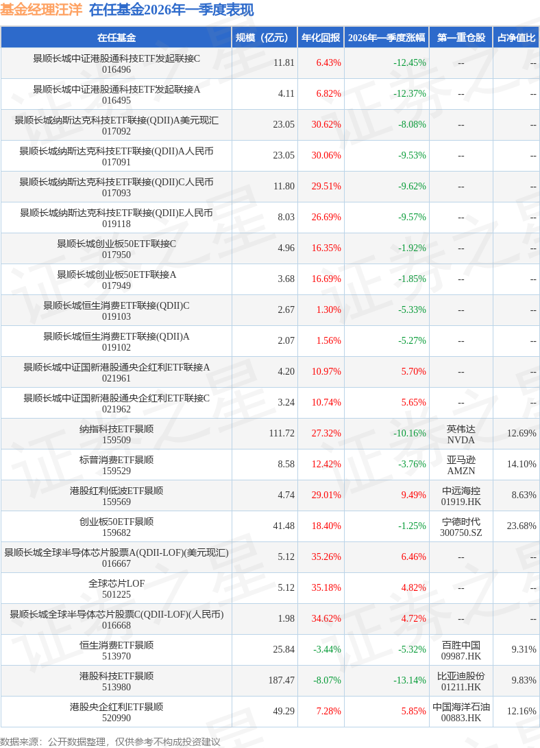 创业板50ETF景顺现任基金经理为汪洋 张晓南。其中在任基金经理汪洋已从业10年又220天,2022年12月23日正式接手管理创业板50ETF景顺,任职期间累计回报为75.52%。目前还管理着22只基金产品(包括A类和C类),其中本季度表现最佳的基金为港股红利低波ETF景顺(159569),季度净值涨幅为9.49%。