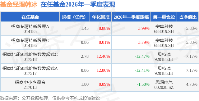 证券之星消息,日前招商北证50成份指数发起式A基金公布一季报,2026年一季度最新规模0.86亿元,季度净值涨幅为-12.41%。
