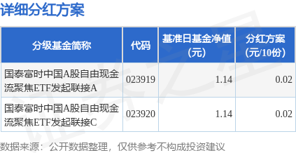 证券之星消息,4月24日发布《国泰富时中国A股自由现金流聚焦交易型开放式指数证券投资基金发起式联接基金第11次分红公告》。本次分红为2026年度第四次分红。。公告显示,本次分红的收益分配基准日为4月4日,详细分红方案如下: