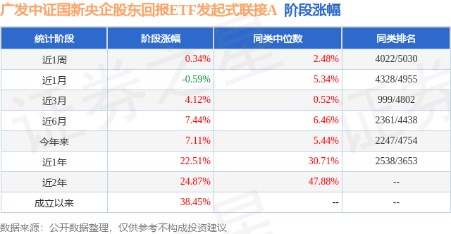 从业绩表现来看,广发中证国新央企股东回报ETF发起式联接A基金过去一年净值涨幅为22.51%,在同类基金中排名2538/3653,同类基金过去一年净值涨幅中位数为30.71%。而基金过去一年的最大回撤为-7.34%,成立以来的最大回撤为-13.9%。