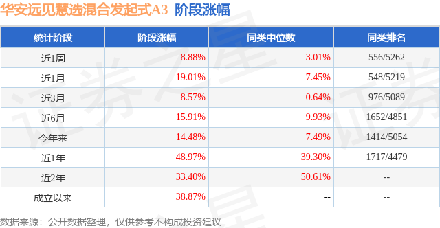 从业绩表现来看,华安远见慧选混合发起式A3基金过去一年净值涨幅为48.97%,在同类基金中排名1717/4479,同类基金过去一年净值涨幅中位数为39.3%。而基金过去一年的最大回撤为-14.06%,成立以来的最大回撤为-20.9%。
