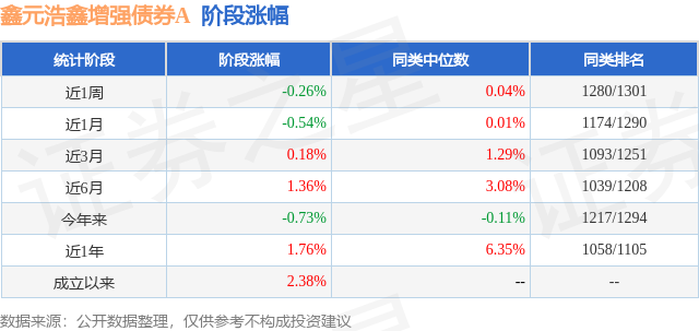 从业绩表现来看,鑫元浩鑫增强债券A基金过去一年净值涨幅为5.36%,在同类基金中排名785/1286,同类基金过去一年净值涨幅中位数为6.4%。而基金过去一年的最大回撤为-1.14%,成立以来的最大回撤为-1.34%。