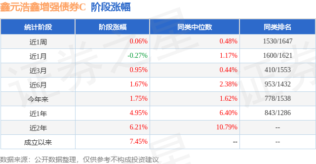 从业绩表现来看,鑫元浩鑫增强债券C基金过去一年净值涨幅为4.95%,在同类基金中排名843/1286,同类基金过去一年净值涨幅中位数为6.4%。而基金过去一年的最大回撤为-1.18%,成立以来的最大回撤为-1.45%。