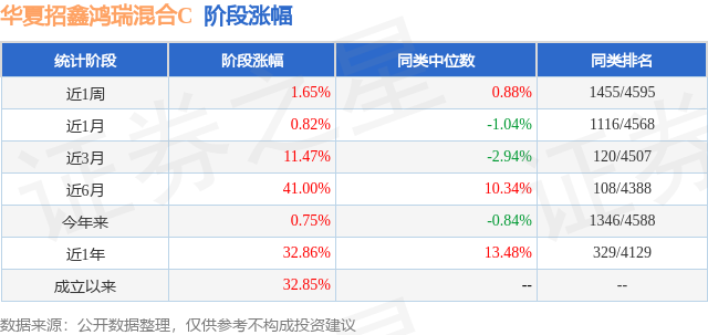 从业绩表现来看,华夏招鑫鸿瑞混合C基金过去一年净值涨幅为89.29%,在同类基金中排名517/4479,同类基金过去一年净值涨幅中位数为39.3%。而基金过去一年的最大回撤为-9.52%,成立以来的最大回撤为-20.71%。