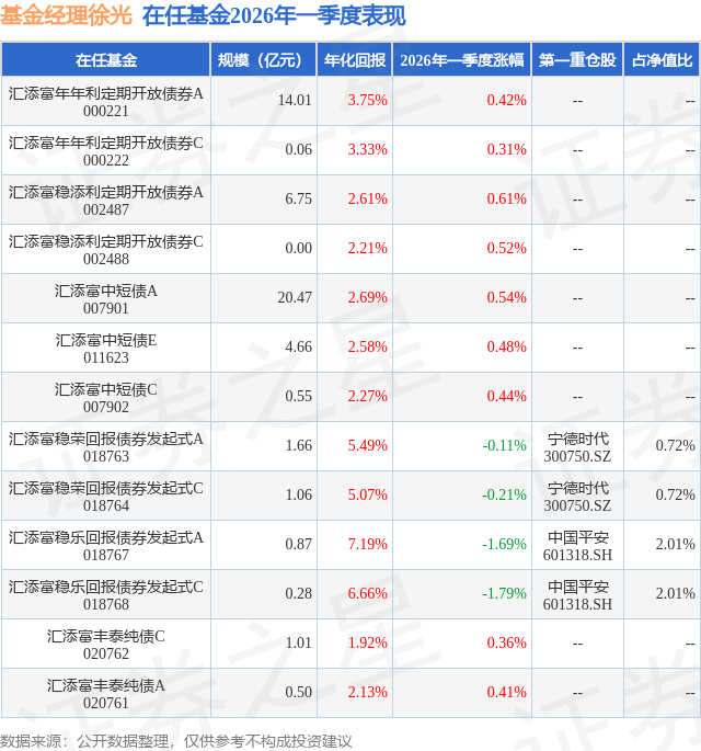 证券之星消息,日前汇添富稳乐回报债券发起式A基金公布一季报,2026年一季度最新规模0.87亿元,季度净值涨幅为-1.69%。