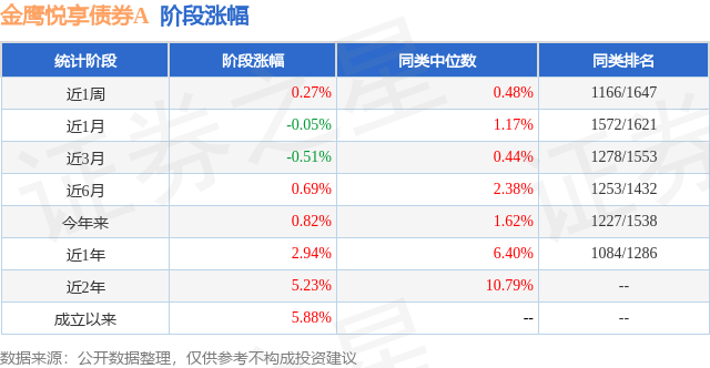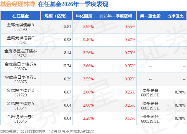证券之星消息,日前金鹰悦享债券A基金公布一季报,2026年一季度最新规模0.04亿元,季度净值涨幅为0.25%。