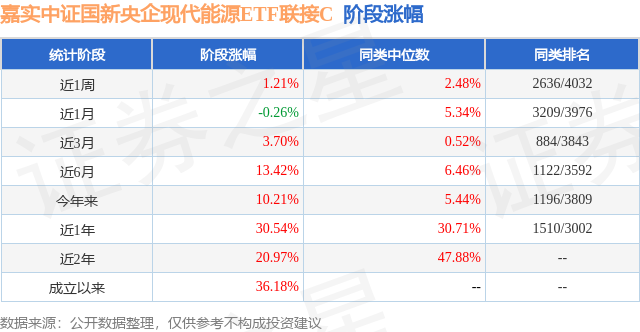 从业绩表现来看,嘉实中证国新央企现代能源ETF联接C基金过去一年净值涨幅为30.54%,在同类基金中排名1510/3002,同类基金过去一年净值涨幅中位数为30.71%。而基金过去一年的最大回撤为-10.97%,成立以来的最大回撤为-15.9%。