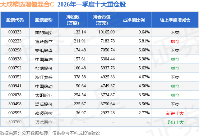 证券之星消息,日前大成精选增值混合C基金公布一季报,2026年一季度最新规模0.03亿元,季度净值涨幅为-0.02%。