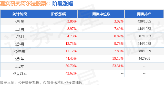 从业绩表现来看,嘉实研究阿尔法股票C基金过去一年净值涨幅为44.45%,在同类基金中排名442/988,同类基金过去一年净值涨幅中位数为39.13%。而基金过去一年的最大回撤为-8.32%,成立以来的最大回撤为-18.47%。