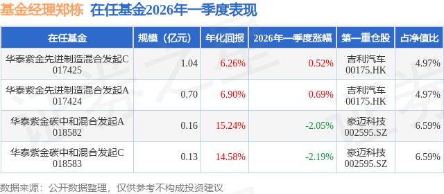 证券之星消息,日前华泰紫金碳中和混合发起A基金公布一季报,2026年一季度最新规模0.16亿元,季度净值涨幅为-2.05%。