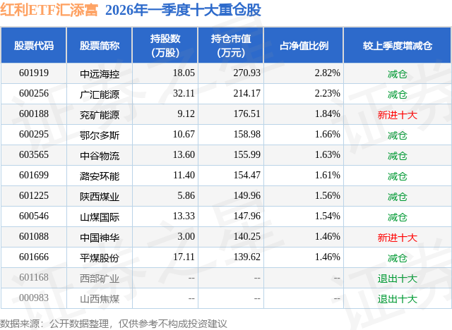 证券之星消息,日前红利ETF汇添富基金公布一季报,2026年一季度最新规模0.96亿元,季度净值涨幅为4.16%。