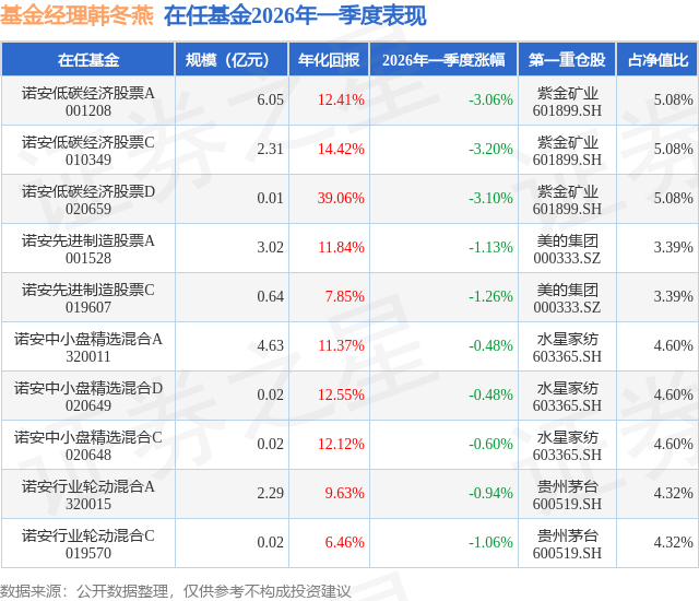 证券之星消息,日前诺安先进制造股票C基金公布一季报,2026年一季度最新规模0.64亿元,季度净值涨幅为-1.26%。