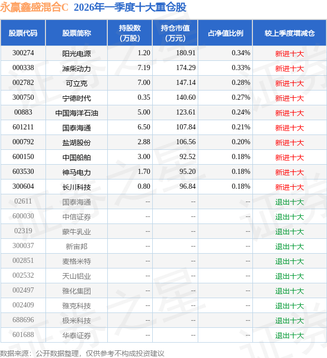 证券之星消息,日前永赢鑫盛混合C基金公布一季报,2026年一季度最新规模2.4亿元,季度净值涨幅为0.61%。