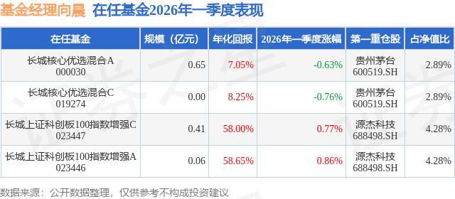证券之星消息,日前长城核心优选混合C基金公布一季报,2026年一季度最新规模0.0亿元,季度净值涨幅为-0.76%。