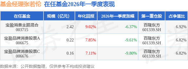 证券之星消息,日前宝盈消费主题混合基金公布一季报,2026年一季度最新规模2.42亿元,季度净值涨幅为-6.37%。