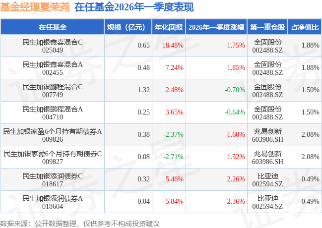 证券之星消息,日前民生加银鑫喜混合A基金公布一季报,2026年一季度最新规模0.48亿元,季度净值涨幅为1.85%。