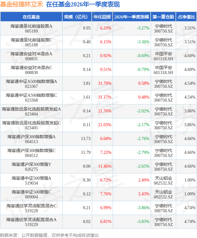 证券之星消息,日前海富通欣享灵活配置混合C基金公布一季报,2026年一季度最新规模0.21亿元,季度净值涨幅为-3.86%。