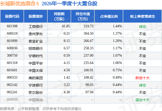 证券之星消息,日前长城新优选混合A基金公布一季报,2026年一季度最新规模1.56亿元,季度净值涨幅为-0.59%。