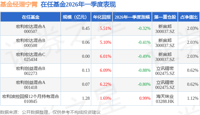 证券之星消息,日前宏利创益混合B基金公布一季报,2026年一季度最新规模0.13亿元,季度净值涨幅为-0.88%。