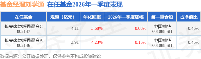 证券之星消息,日前长安鑫益增强混合A基金公布一季报,2026年一季度最新规模3.91亿元,季度净值涨幅为0.15%。