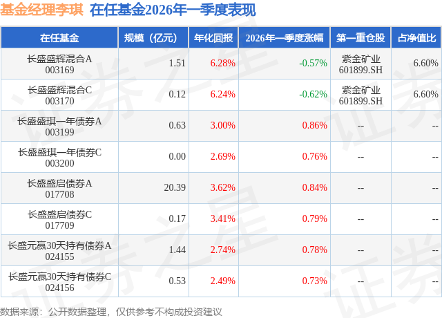 证券之星消息,日前长盛盛辉混合A基金公布一季报,2026年一季度最新规模1.51亿元,季度净值涨幅为-0.57%。