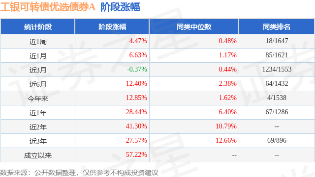 从业绩表现来看,工银可转债优选债券A基金过去一年净值涨幅为28.44%,在同类基金中排名67/1286,同类基金过去一年净值涨幅中位数为6.4%。而基金过去一年的最大回撤为-14.63%,成立以来的最大回撤为-39.41%。