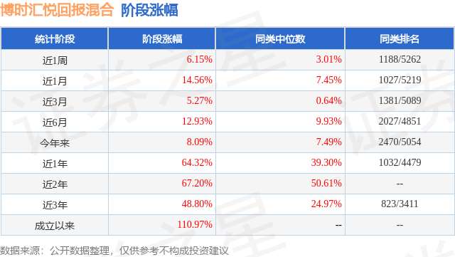 从业绩表现来看,博时汇悦回报混合基金过去一年净值涨幅为64.32%,在同类基金中排名1032/4479,同类基金过去一年净值涨幅中位数为39.3%。而基金过去一年的最大回撤为-13.07%,成立以来的最大回撤为-52.13%。