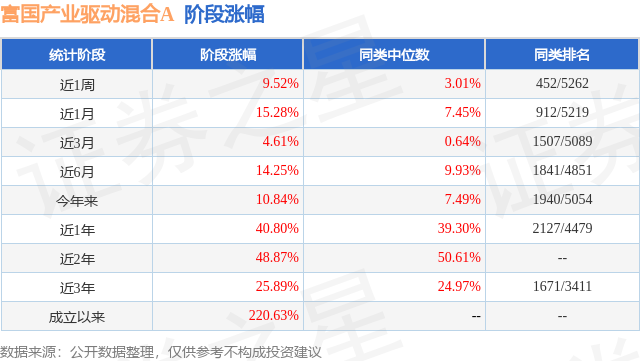 从业绩表现来看,富国产业驱动混合A基金过去一年净值涨幅为40.8%,在同类基金中排名2127/4479,同类基金过去一年净值涨幅中位数为39.3%。而基金过去一年的最大回撤为-13.96%,成立以来的最大回撤为-45.88%。
