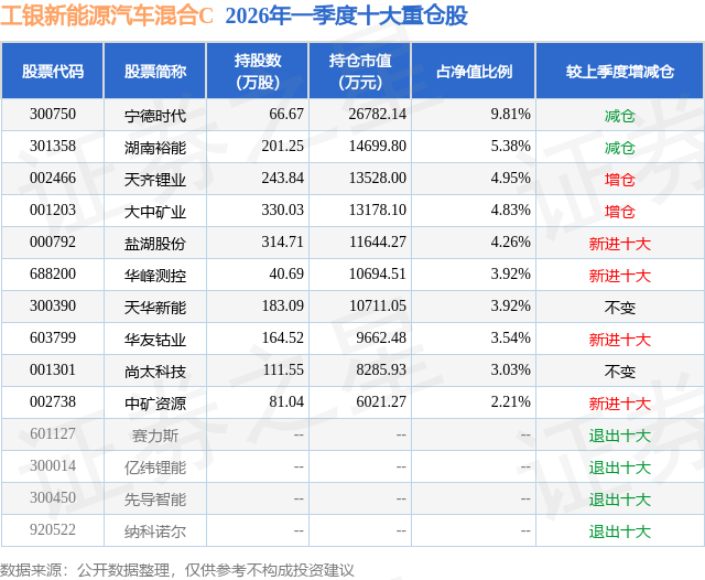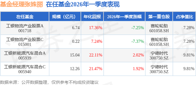 证券之星消息,日前工银新能源汽车混合C基金公布一季报,2026年一季度最新规模12.26亿元,季度净值涨幅为1.92%。