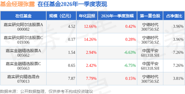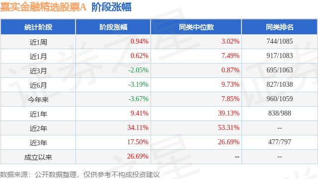 证券之星消息,日前嘉实金融精选股票A基金公布一季报,2026年一季度最新规模1.54亿元,季度净值涨幅为-6.63%。