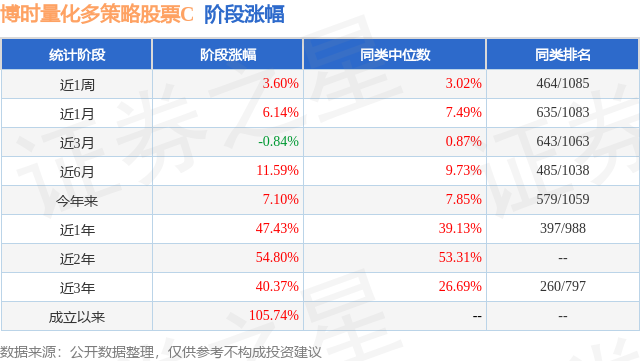 从业绩表现来看,博时量化多策略股票C基金过去一年净值涨幅为47.43%,在同类基金中排名397/988,同类基金过去一年净值涨幅中位数为39.13%。而基金过去一年的最大回撤为-10.86%,成立以来的最大回撤为-34.24%。