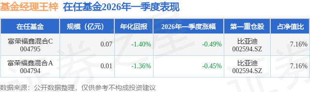 证券之星消息,日前富荣福鑫混合A基金公布一季报,2026年一季度最新规模0.01亿元,季度净值涨幅为-0.45%。