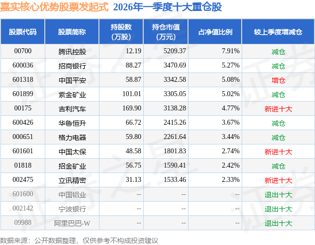 证券之星消息,日前嘉实核心优势股票发起式基金公布一季报,2026年一季度最新规模6.58亿元,季度净值涨幅为-6.63%。