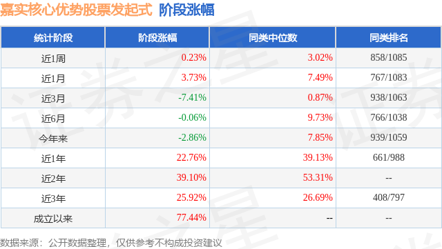 从业绩表现来看,嘉实核心优势股票发起式基金过去一年净值涨幅为22.76%,在同类基金中排名661/988,同类基金过去一年净值涨幅中位数为39.13%。而基金过去一年的最大回撤为-15.67%,成立以来的最大回撤为-50.63%。