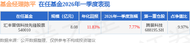 证券之星消息,日前汇丰晋信科技先锋股票基金公布一季报,2026年一季度最新规模8.08亿元,季度净值涨幅为7.77%。