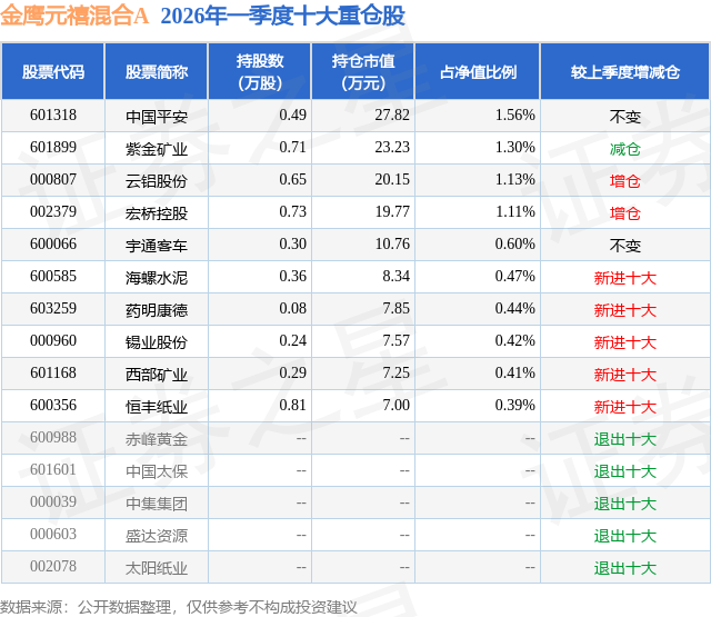 证券之星消息,日前金鹰元禧混合A基金公布一季报,2026年一季度最新规模0.15亿元,季度净值涨幅为1.95%。