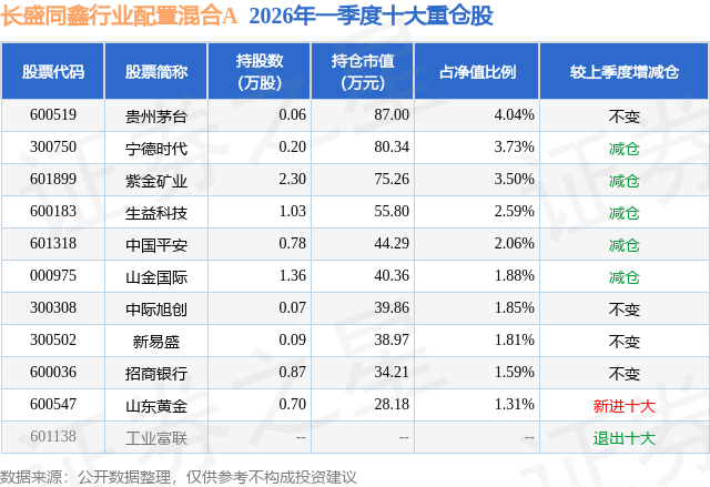 证券之星消息,日前长盛同鑫行业配置混合A基金公布一季报,2026年一季度最新规模0.2亿元,季度净值涨幅为-2.75%。