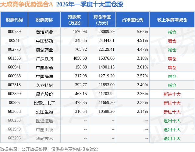 证券之星消息,日前大成竞争优势混合A基金公布一季报,2026年一季度最新规模34.14亿元,季度净值涨幅为1.75%。