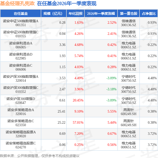 证券之星消息,日前诺安沪深300指数增强A基金公布一季报,2026年一季度最新规模3.53亿元,季度净值涨幅为-3.09%。