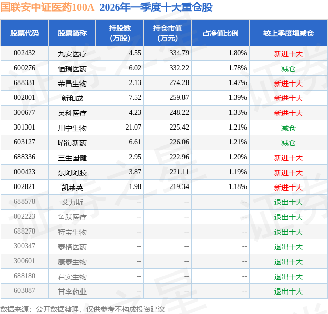 证券之星消息,日前国联安中证医药100A基金公布一季报,2026年一季度最新规模1.53亿元,季度净值涨幅为-0.53%。
