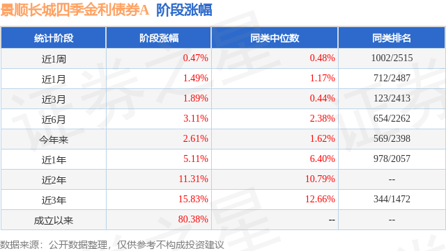 从业绩表现来看,景顺长城四季金利债券A基金过去一年净值涨幅为5.11%,在同类基金中排名978/2057,同类基金过去一年净值涨幅中位数为6.4%。而基金过去一年的最大回撤为-0.72%,成立以来的最大回撤为-5.58%。