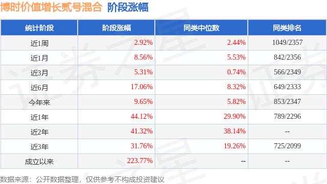 从业绩表现来看,博时价值增长贰号混合基金过去一年净值涨幅为44.12%,在同类基金中排名789/2296,同类基金过去一年净值涨幅中位数为29.9%。而基金过去一年的最大回撤为-7.32%,成立以来的最大回撤为-56.48%。